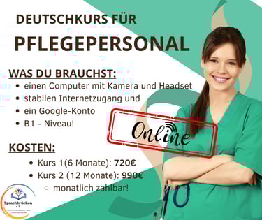 Spezialkurs "Deutsch für Pflegekräfte" - ONLINE